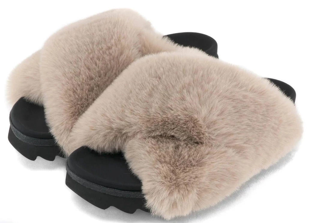 Our clouds are made withΓΒ one of the highest quality faux furs available, hand selectedΓΒ for its density and luscious feel , it creates a luxe, cool and sporty look.ΓΒ We integrate a unique process by hand that incorporates memory foam into our uppers which creates extreme comfort and allows each of our shoes to mold to your feet.ΓΒ Our uppers are backed in cotton fleece further adding extreme softness! They truly create a hug for your foot.ΓΒ Our custom molded footbed provides both tremendous comfort and support. They are covered in black neoprene, for breathability and wicking keeping your feet comfortable and dry.ΓΒ Our sole is made of a durable recycled fashionable tread which allow the slippers to move withΓΒ your feet, providing superior shock absorption and flexibility.Perfect for ROAMING anywhere….whether it is traveling around your city or a new one exploring, post-workout, to and from the office, school drop offs,ΓΒ or walking your dog…anywhere you’d want your feet to be fashionable, cool and comfortable.R0AMs should fit snug on your feet, for a flop-free walk. ]WE SUGGEST YOU SIZE ONE FULL SIZE UP FROM YOU USUAL SIZE THAT YOU WEAR FOR OPTIMUM FIT AND COMFORT! !