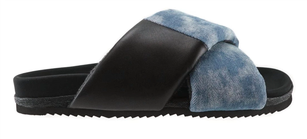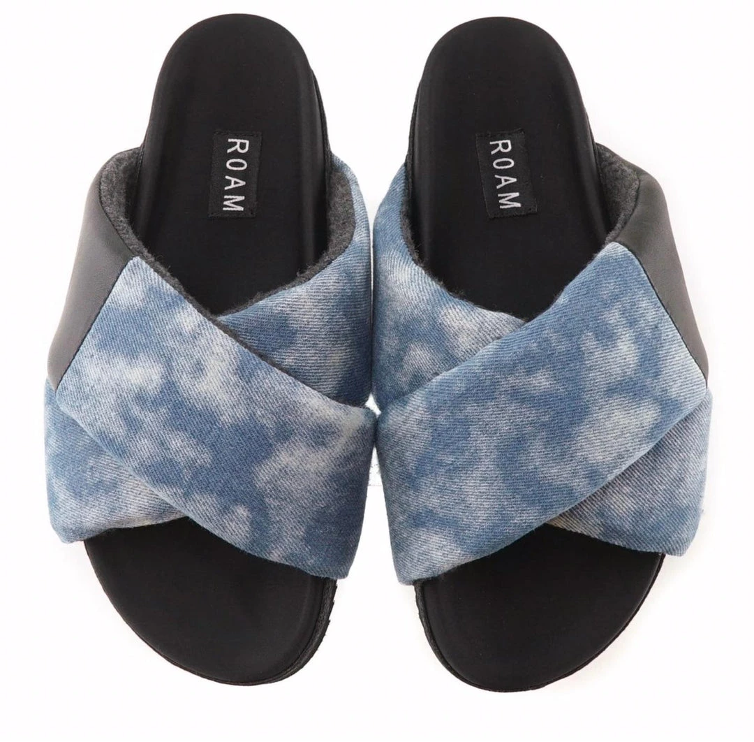 Our Denim CrossΓΒ sandalsΓΒ are beautifully made in a washed, denim shibori with a Cloud wash and leather patch accent. They are meticulously created for a sophisticated and sporty look.ΓΒ We integrate a unique process by hand that incorporates memory foam into our uppers which creates extreme comfort and allows each of our shoes to mold to your feet.ΓΒ They areΓΒ backed in cotton fleece for added softness and our signature fit truly creates a hug for your foot.ΓΒ Our custom molded footbed provides both tremendous comfort and support. They are covered in black neoprene, for breathability and wicking keeping your feet comfortable and dry.ΓΒ Our sole is made of a high-flex, recycled and durable tread which allow the slippers to move withΓΒ your feet.ΓΒ ΓΒ